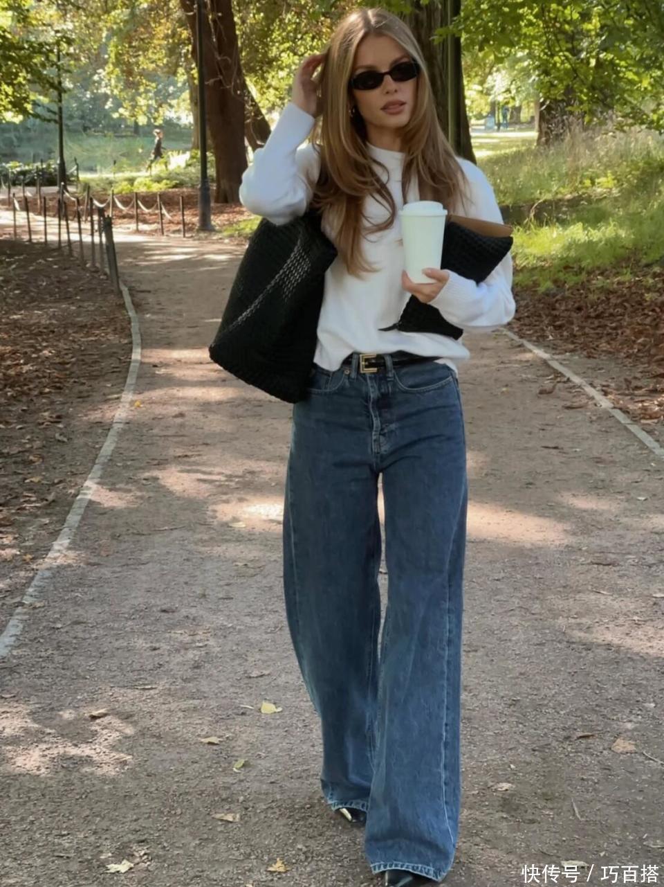 领先,一定要明显哪种体态的姐妹顺应选拔宽松肥硕的阔腿牛仔裤。