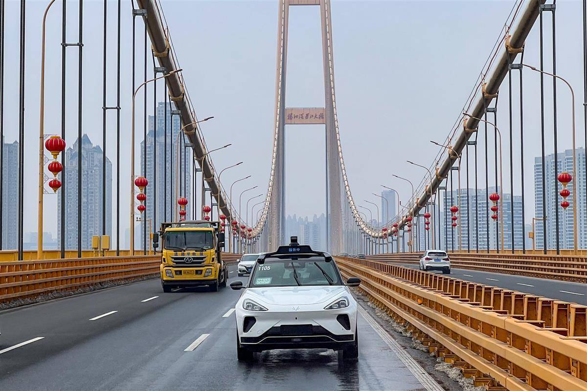 024年2月27日,百度“萝卜快跑”全无东说念主自动驾驶汽车在武汉杨泗港长江大桥桥面上行驶。当日,“萝卜快跑”全无东说念主自动驾驶汽车初次实现跨江出行,武汉也成为寰球首个实现智能网联汽车横跨长江意会示范运营的城市。(湖北日报全媒记者 倪娜 摄)