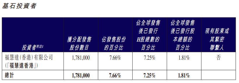 红星冷链的基石投资者是福慧达(香港)有限公司。
