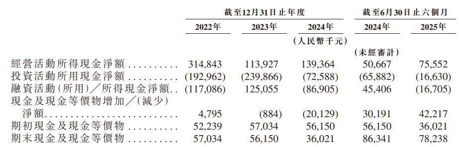 2022年、2023年、2024年、2025年1-6月,红星冷链的策动行径所得现款净额辞别为东谈主民币314.8百万元、东谈主民币113.9百万元、东谈主民币139.4百万元、东谈主民币75.6百万元。