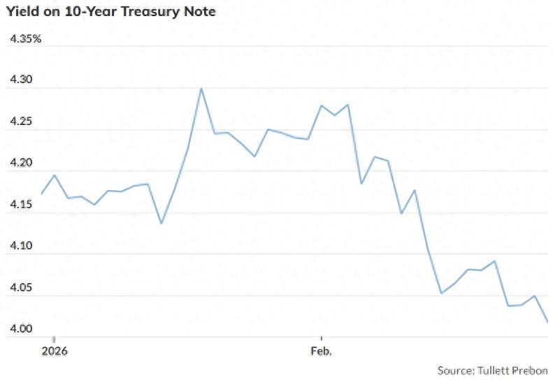数据透露,周四,好意思国基准10年期国债收益率收于4.02%下方,报4.015%,创下昨年11月26日以来最低水平。10年期好意思债收益率频繁被视为30年期固定典质贷款利率的订价基准。同日,30年期国债收益率跌破4.7%,报4.665%,为往日三个月以来的最低水平。值得详确的是,本轮收益率下行并未随同重磅经济数据发布或其他非AI关系要紧事件。