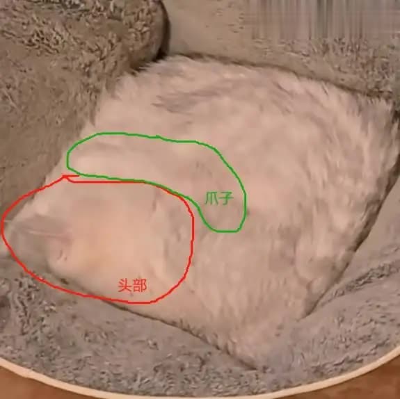 有网友还厚爱地画了一张图解,标注出了猫的头和尾巴可能的位置,辩驳区已而酿成了“找茬现场”,全球纷纷推断这只“方形猫”到底是如何摆出这个姿势的。