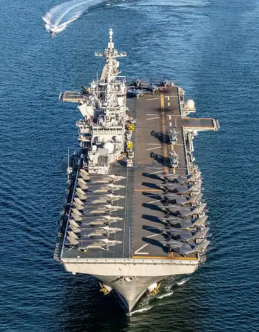 “的黎波里”号永恒注重在日本佐世保基地,长259米,排水量4.5万吨,可搭载F-35战斗机、MV-22鱼鹰运载机,特地于一艘袖珍航母,是好意思国放在东亚,筹备顽抗中国、朝鲜、俄罗斯的首要海上力量。